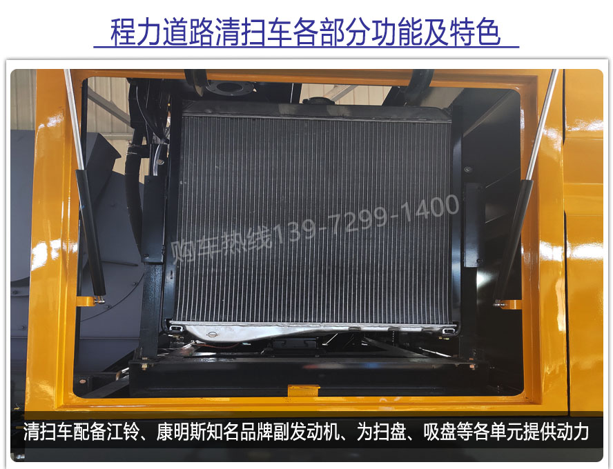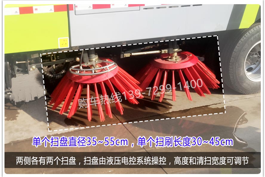二、上裝配置: 標(biāo)配掃盤4把;掃盤轉(zhuǎn)速實現(xiàn)獨(dú)立3檔調(diào)速;大力馬達(dá);施耐德控件開關(guān);臺灣液壓閥;皖液液壓油泵;新西山水泵;免維護(hù)自分離式離合器;免維護(hù)風(fēng)機(jī);不銹鋼水箱;不銹鋼垃圾箱;尾部LED箭頭燈;手動泵應(yīng)急系統(tǒng);前掃刷臂轉(zhuǎn)動機(jī)構(gòu)使用高新耐磨工程隔套,免打黃油;精密冷彎無縫液壓油管。