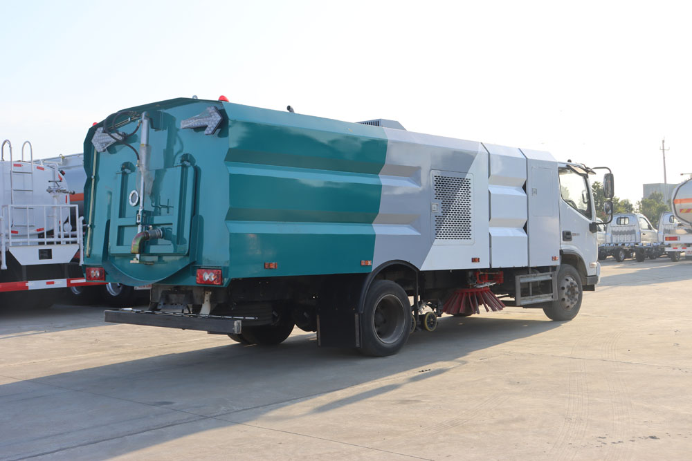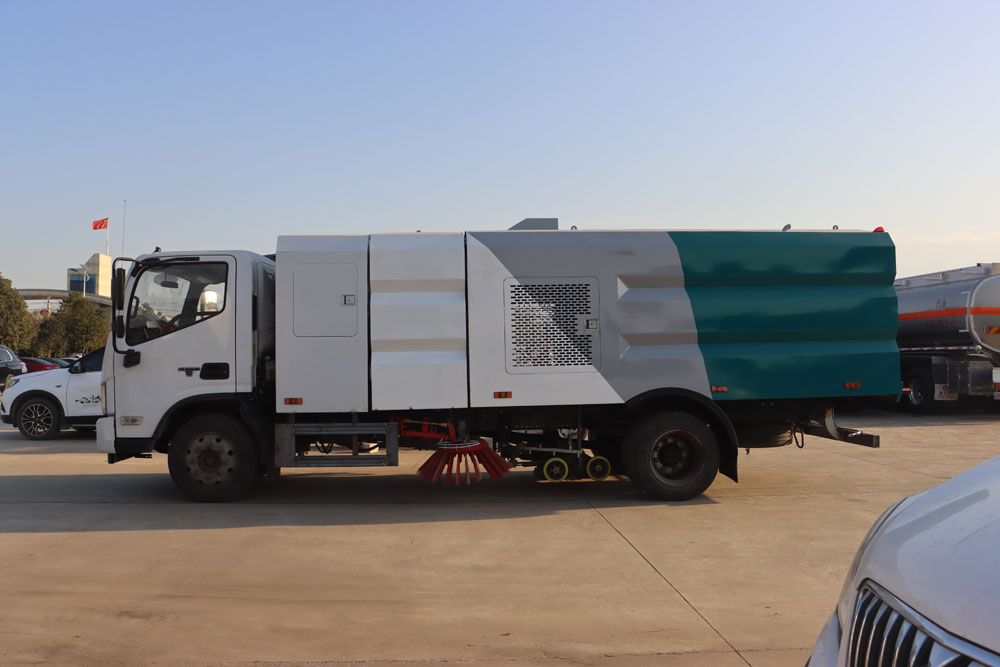● 左右側(cè)噴桿V形布置和吸嘴內(nèi)置主噴桿無間隙高壓噴嘴噴水布置,有效的將清洗后的污水和垃圾全部歸攏趕至吸嘴處,并吸收于污水垃圾箱內(nèi),使路面不留塵土、積水,路面清洗、刷掃和污水回收效果佳。