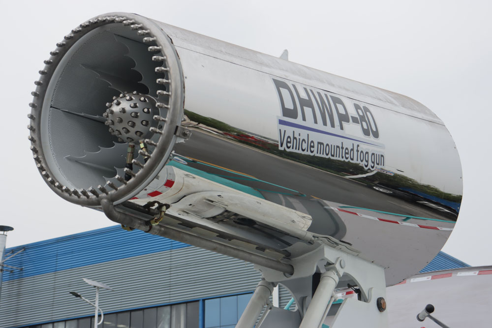 4、工作效率高、噴霧速度快;對容易引起塵埃的堆場噴水除塵時,噴出的霧粒細小與飄起的塵埃接觸時,形成一種潮濕霧狀體,能快速將塵埃抑制降沉,霧量沉降率可達95%。
