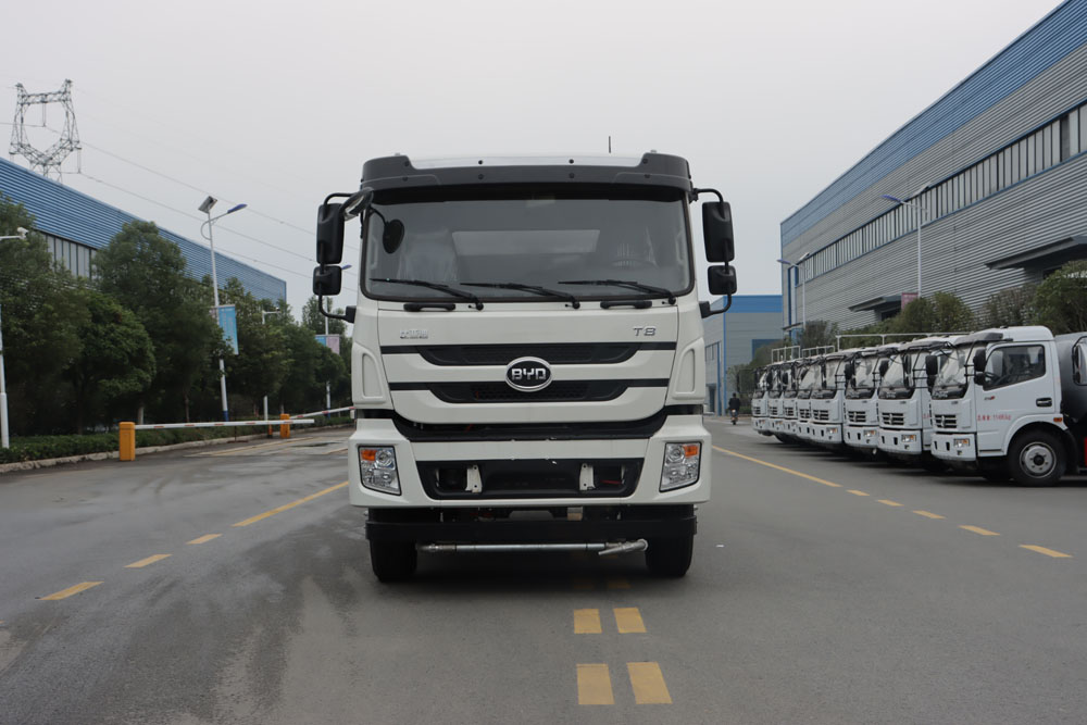 一、底盤配置: 采用BYD1180D8HBEVD1車身,配置玉柴BYD-3425TZ-XS-A發動機180馬力,國六排放標準,軸距4500(mm),整備質量11.79噸,額定載質量6.08噸,五擋變速箱,帶動力轉向,帶原廠空調,該車上黃牌,城區道路請注意限行標識。