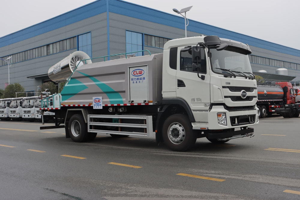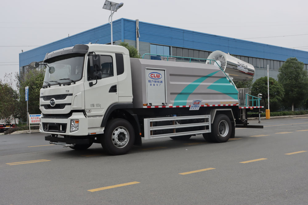 四、其他說明: 比亞迪T8純電動多功能抑塵車是在純電動二類底盤的基礎上,加裝低壓沖洗、灑水系統、霧炮機組,由機械、液壓(氣路)、電器三部分合為一體的專用灑水作業車。 采用自吸式雙級離心泵,效率高、灑水寬度大、水槍射程遠,低壓水泵由底盤變速器取力器通過傳動軸直接傳動。霧炮機組由底盤電池帶動霧炮風扇電機、不銹鋼多級離心泵,進行噴霧降塵工作。