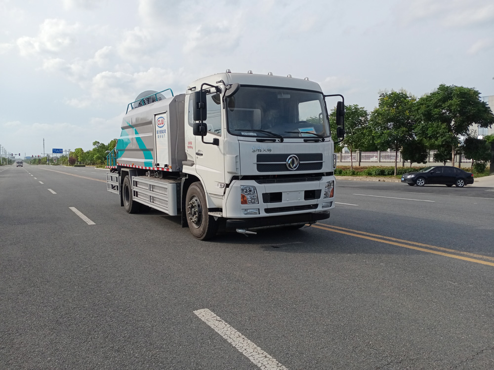 - 前沖圓錐噴嘴,自動控制,操作方便靈活沖洗路面寬度可覆蓋8條車道;后灑圓柱噴嘴,噴出均勻的扇形水霧,寬度可到10m,能有效抑制路面灰塵;