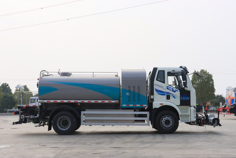 四、其他說明: 解放純電動高壓清洗車是新能源高壓清洗專用車輛,該車型選用解放純電動底盤改裝,具有噪聲低、能耗低、易操作、無排放污染等特點。整車作業效率高,工況時間長,造型時尚,技術達到國內領先水平。高低壓水泵均采用電機驅動,沖洗壓力無極可調,實現提升效率、節能降耗、綠色環保的要求.● 配備前置高壓清洗,通過左右角度及位置調節實現高效清洗。