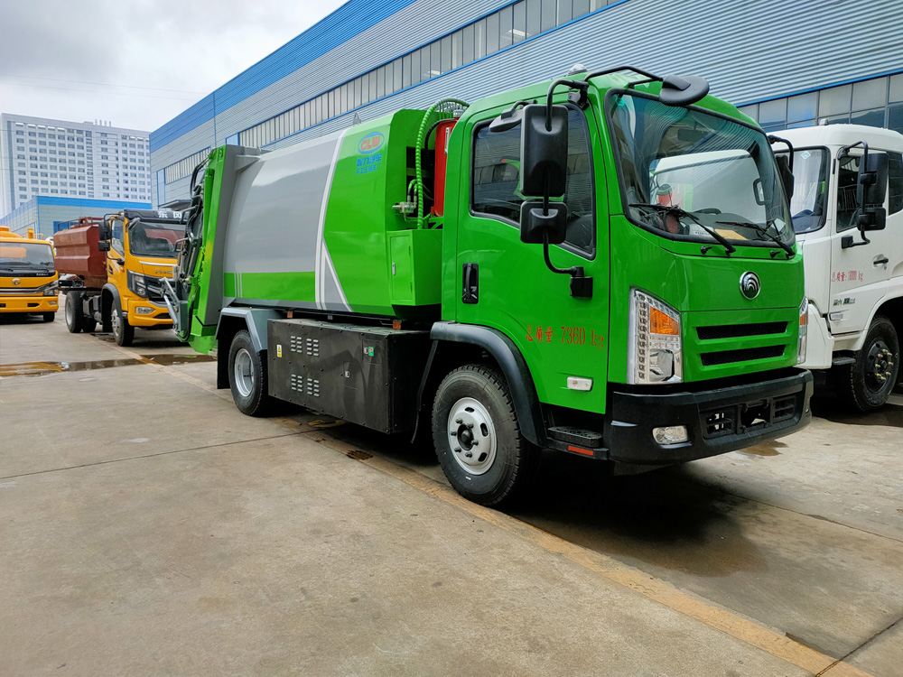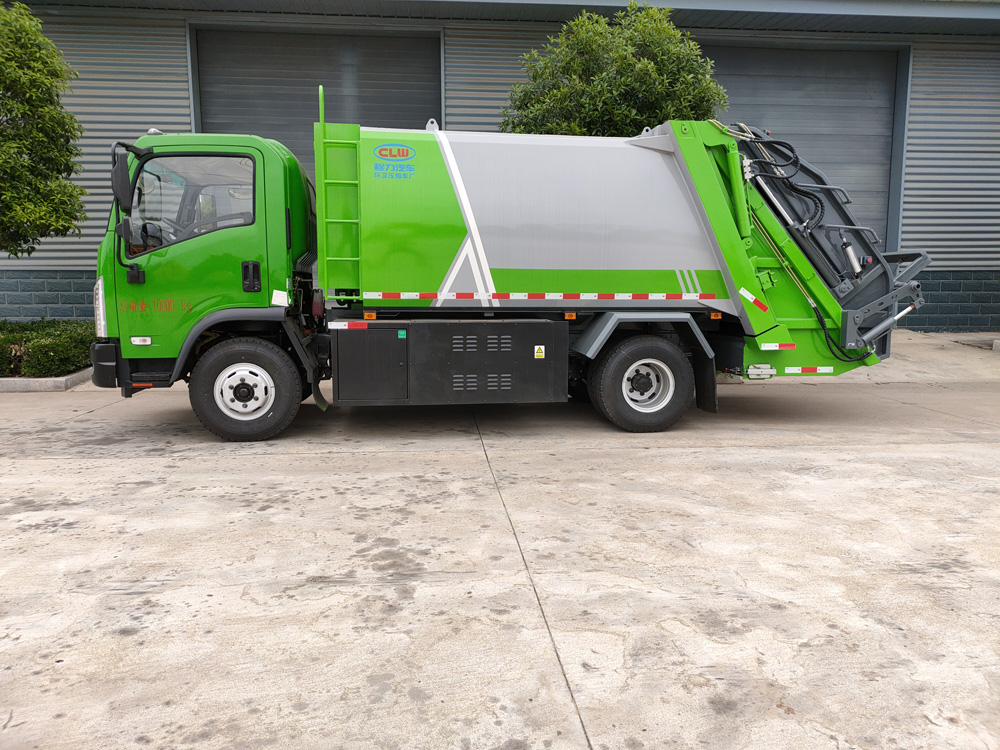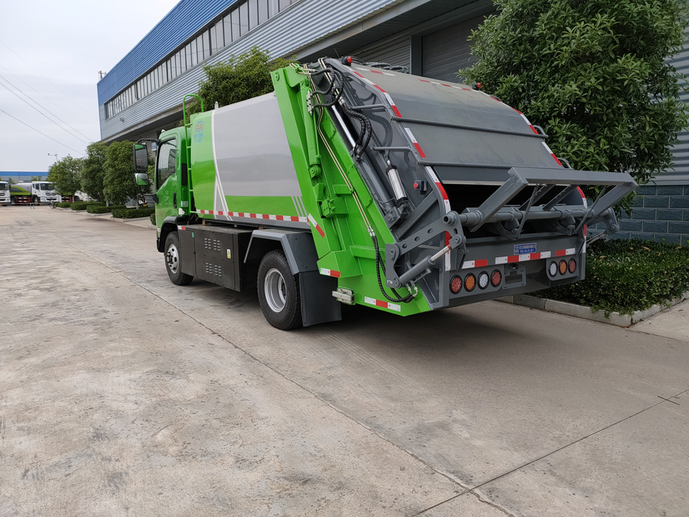 6. 方便的操作控制,作業(yè)控制盒分別安裝在駕駛室內和車尾右側,左側帶緊急停止按鈕,配備遙控器,駕駛室內的作業(yè)控制盒可控制推擠卸料和選擇操作模式(如自動或手動),車尾的作業(yè)控制盒則控制壓填機構和翻桶機構的作業(yè),使用操作十分方便。特別是在垃圾填埋場,作業(yè)人員無須下車即可完成卸料和污水排放。