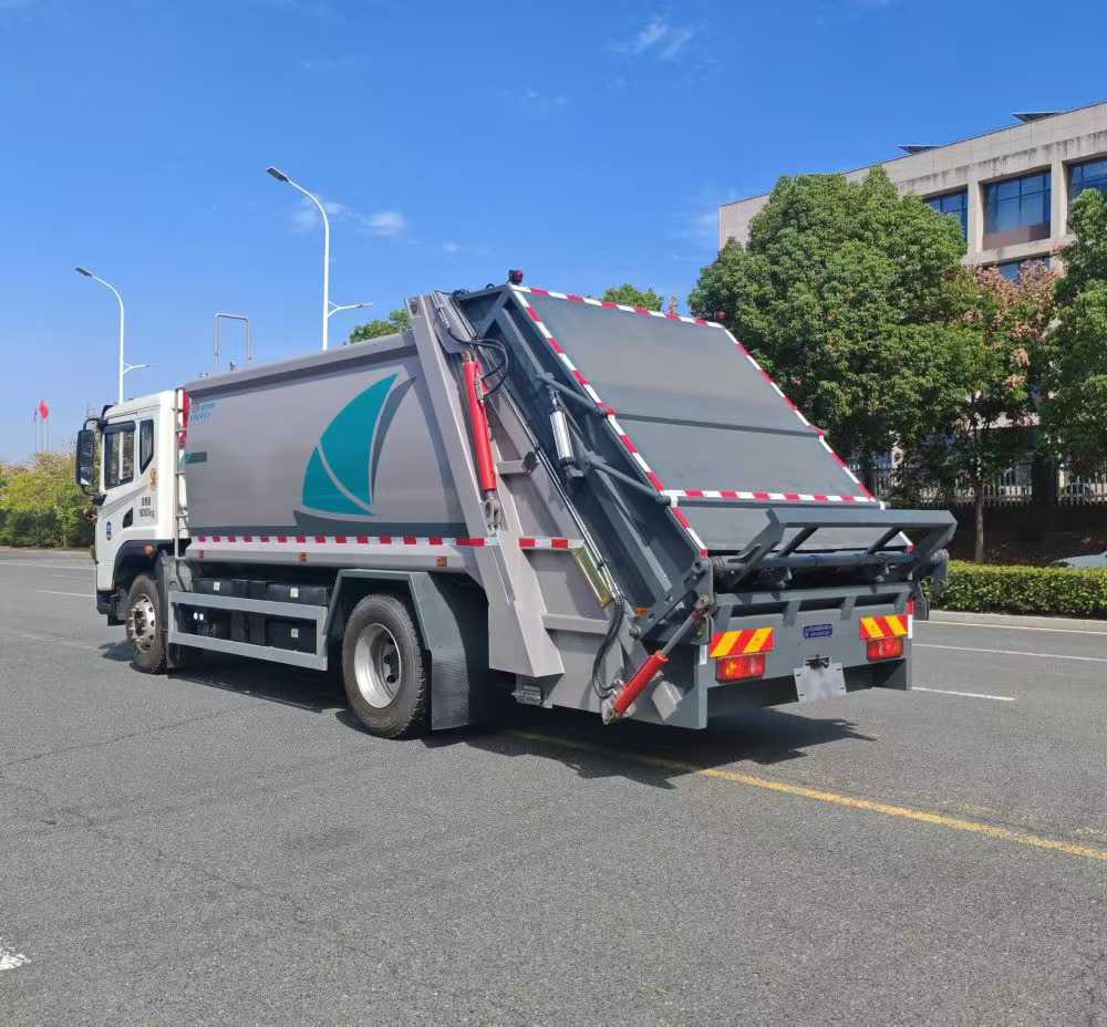 四、其他說(shuō)明: 采用國(guó)內(nèi)領(lǐng)先技術(shù)高強(qiáng)度的 U 形整體成型桁槽 ,作為垃圾推板的活動(dòng)導(dǎo)軌 ,受壓能力強(qiáng) ,抗變形 能力好。 污水分離 :采用導(dǎo)流式污水收集裝置 ,可將填料器與垃圾箱體之間因密封膠條失效而滲漏的污水引流至專用 污水收集箱中 ,有效防止因污水泄漏而造成的二次污染。 容積更大 :垃圾箱體采用弧形設(shè)計(jì) ,美觀 ,結(jié)構(gòu)性能強(qiáng)