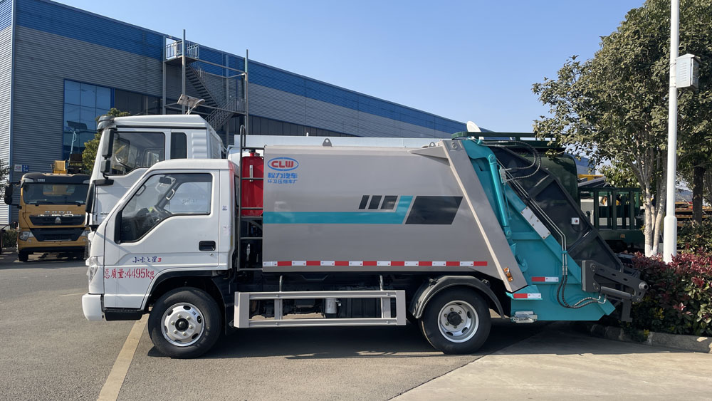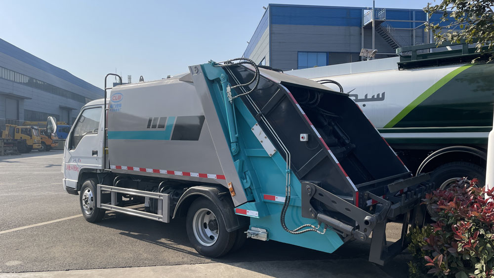 二、上裝配置: 新款平板或弧形箱體,式樣美觀,箱體全滿焊,5-8方箱體厚度邊4底4,10-12方邊4底5,12方以上邊5底5,采用國內著名品牌配件,揚州中煤或合肥長源油泵和液壓多路換向閥、博利或海普瑞斯油缸,杰特高密度液壓油管,帶掛桶或三角斗翻轉進料,翻轉機構可以翻轉國標120、240垃圾桶,帶壓縮推板,后蓋帶液壓鎖緊。PLC一鍵操控系統,可駕駛室內和室外雙電控操作,方便實用。尾部帶密封橡膠墊,污水收集箱,可防污水滴漏二次污染。