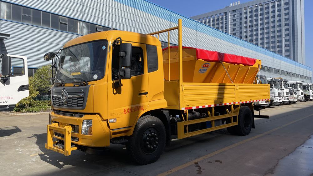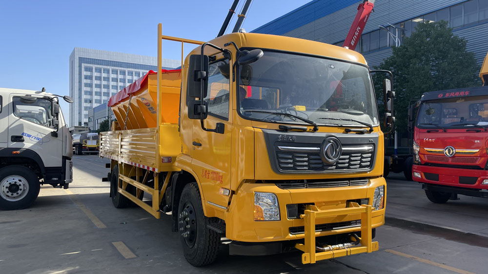 - 采用東風天錦底盤,配備康明斯發動機,動力強勁,如康機 230 馬力發動機,搭配法士特 8 擋變速箱,換擋輕松,傳動效率高,能夠為除雪作業提供穩定可靠的動力支持。車輛軸距一般為 4700mm,模塊緊湊,全車承載能力及通過性良好,前橋 5 噸、后橋 10 噸的配置,承載能力大,自身重量較輕,搭配 10.00R20 的鋼絲胎,高速安全、減震舒適、操縱穩定.